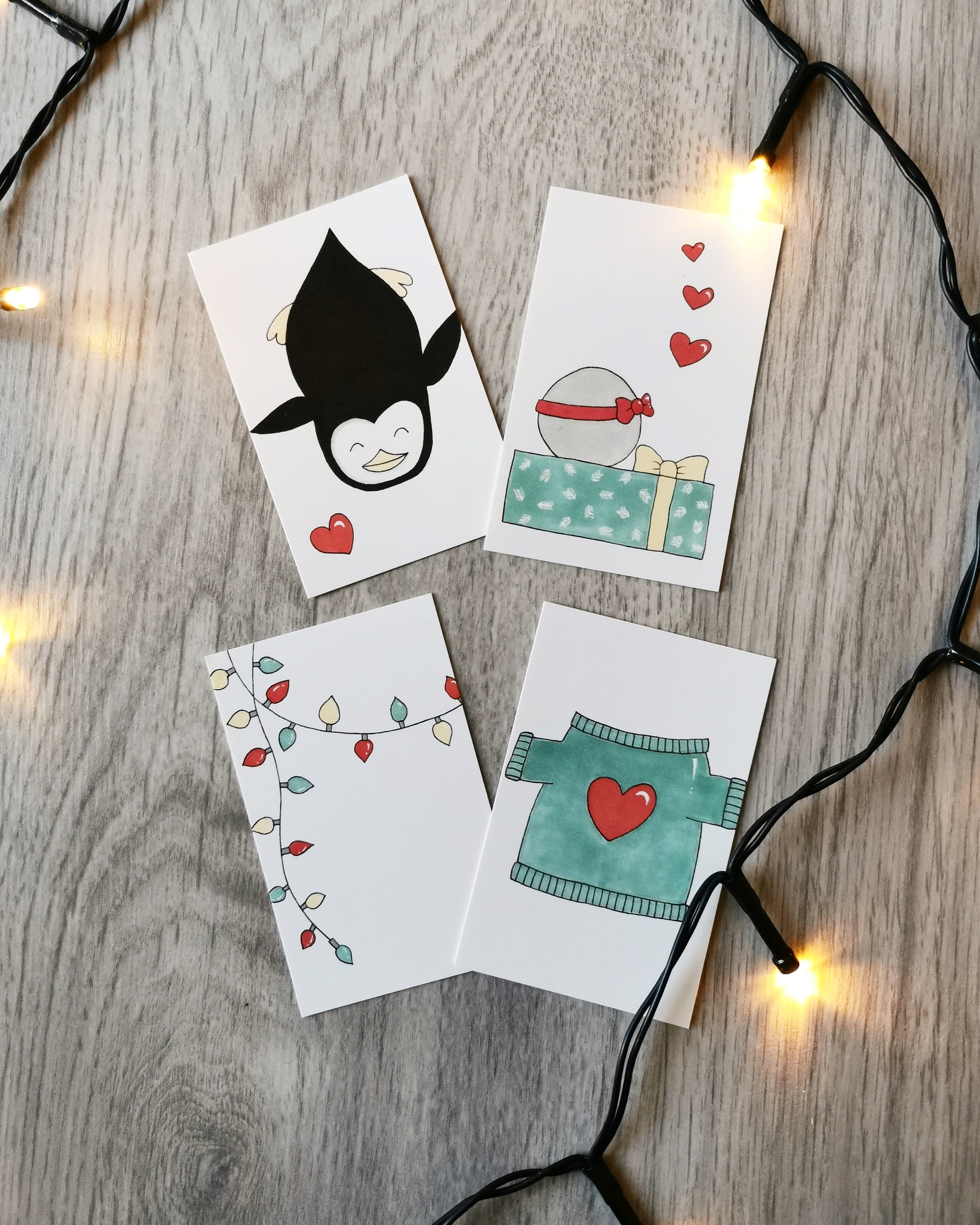 Gavemærkerne er tegnet og farvelagt i hånden af mig og derefter trykt på 300g papir.