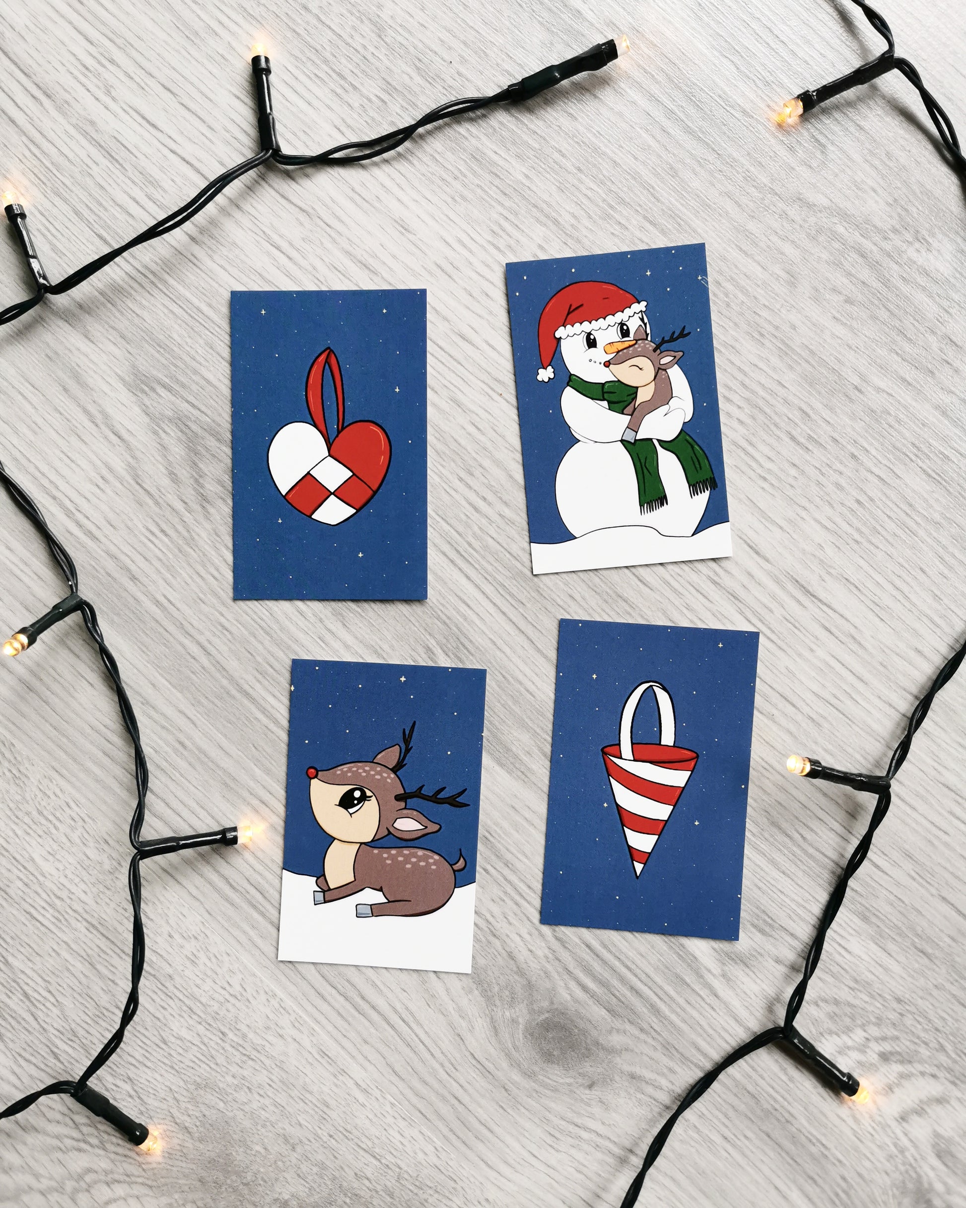 Gavemærkerne er tegnet digitalt og derefter trykt på 300g papir.