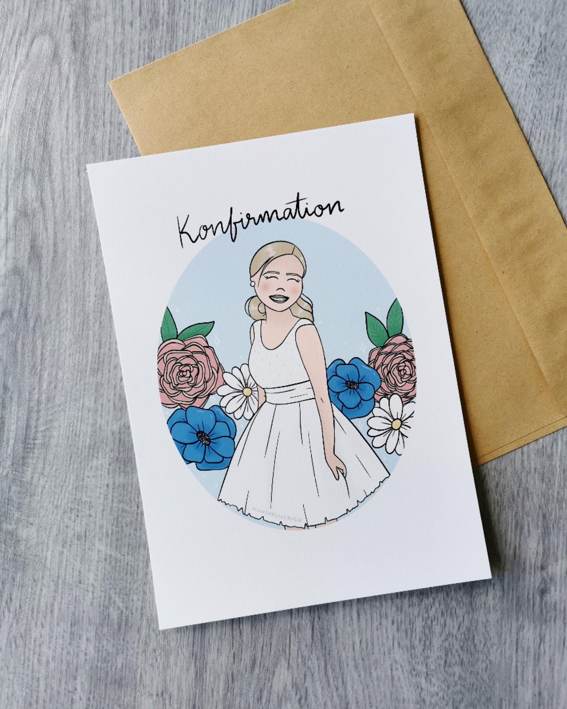 Der er mulighed for at få skrevet navn og dato øverst på kortet. Skriv det ønskede navn og dato i kommentarfeltet ved betaling.