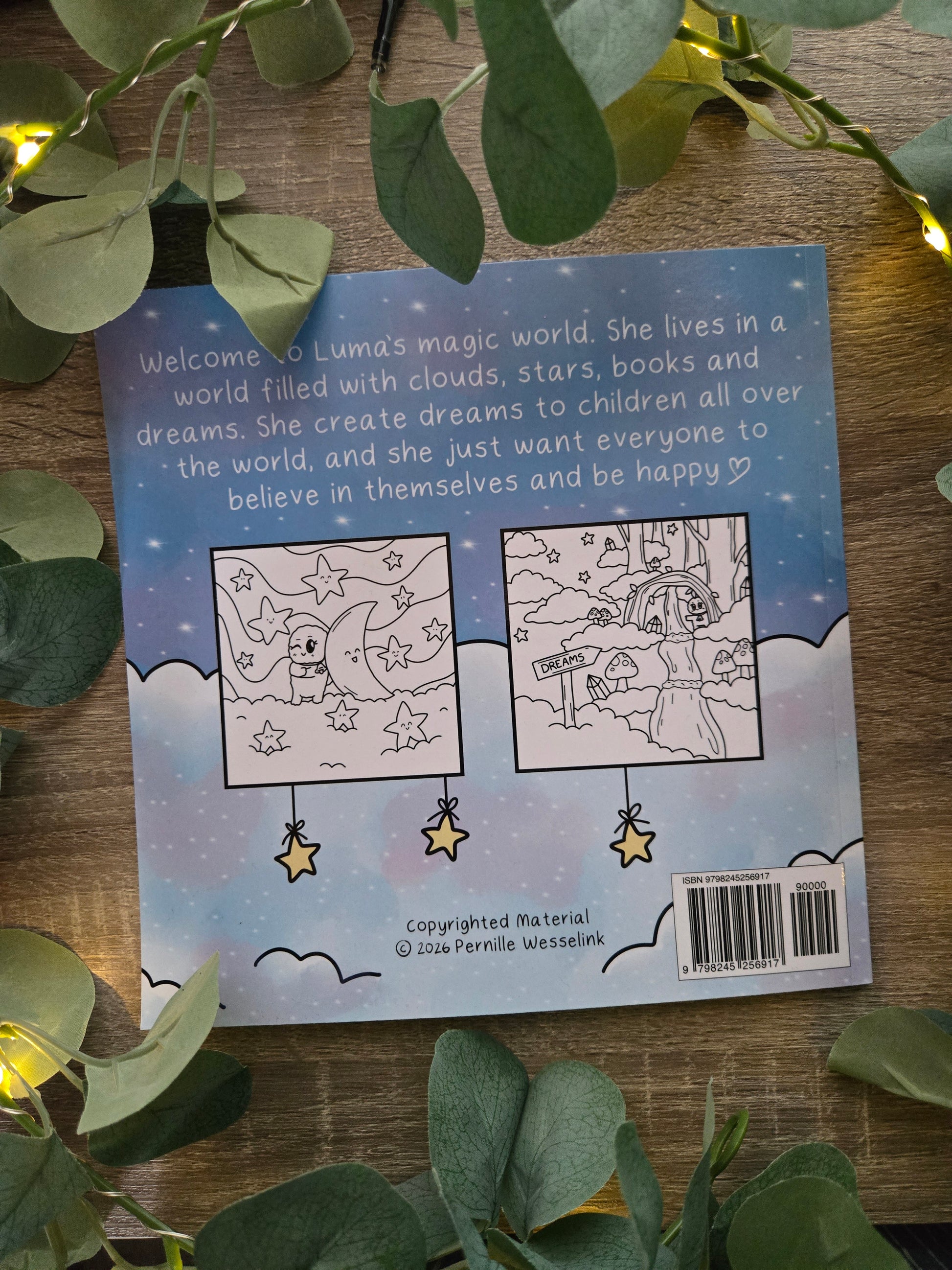 Lumas magiske univers er fyldt med skyer, stjerner, bøger og drømme. Hun skaber drømme til børn over hele verden, og så ønsker hun bare at alle tror på dem selv og er glade 🩷🌟
