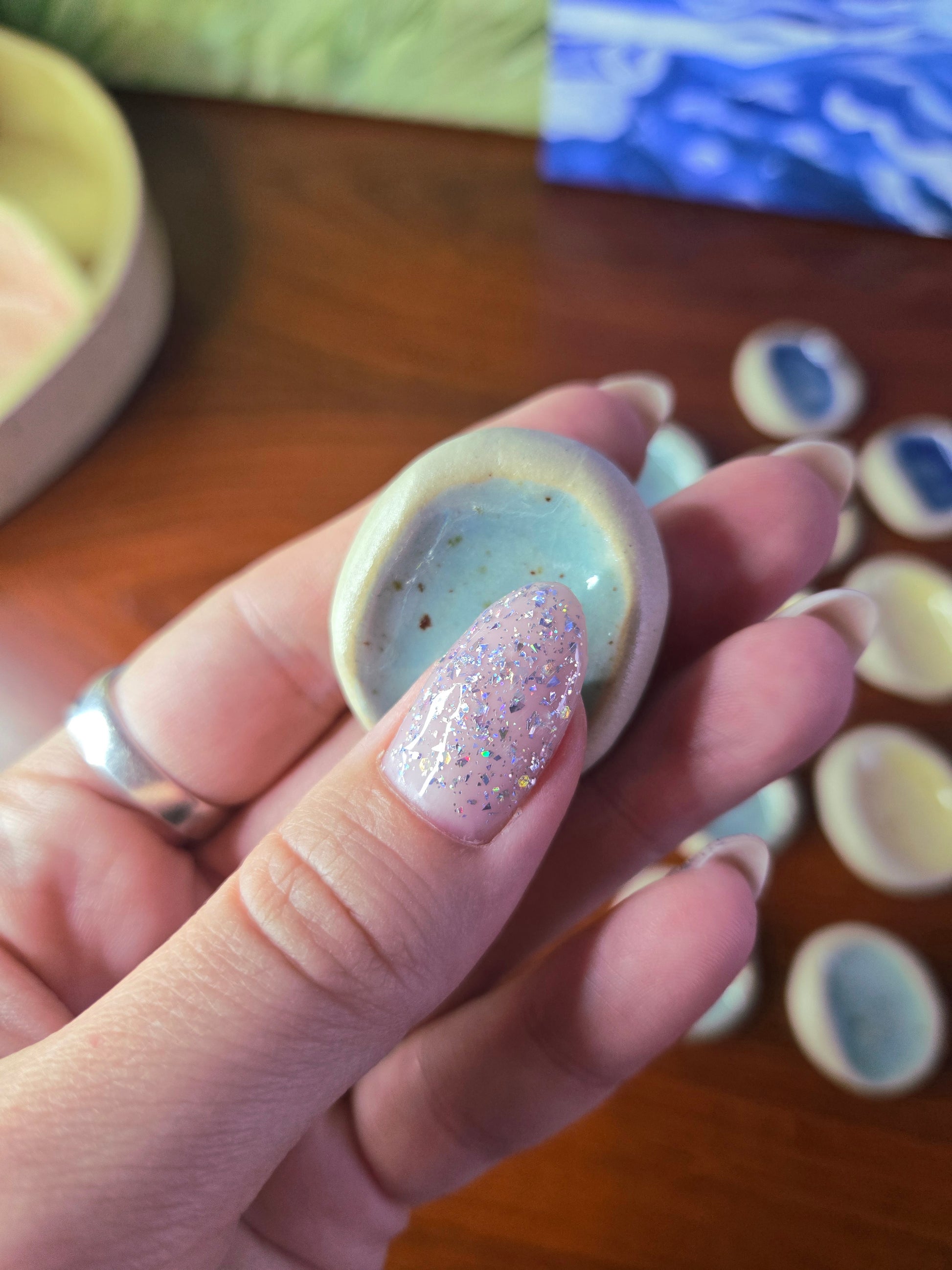 Jeg vælger intuitivt en nussesten til dig i din ønskede farve.