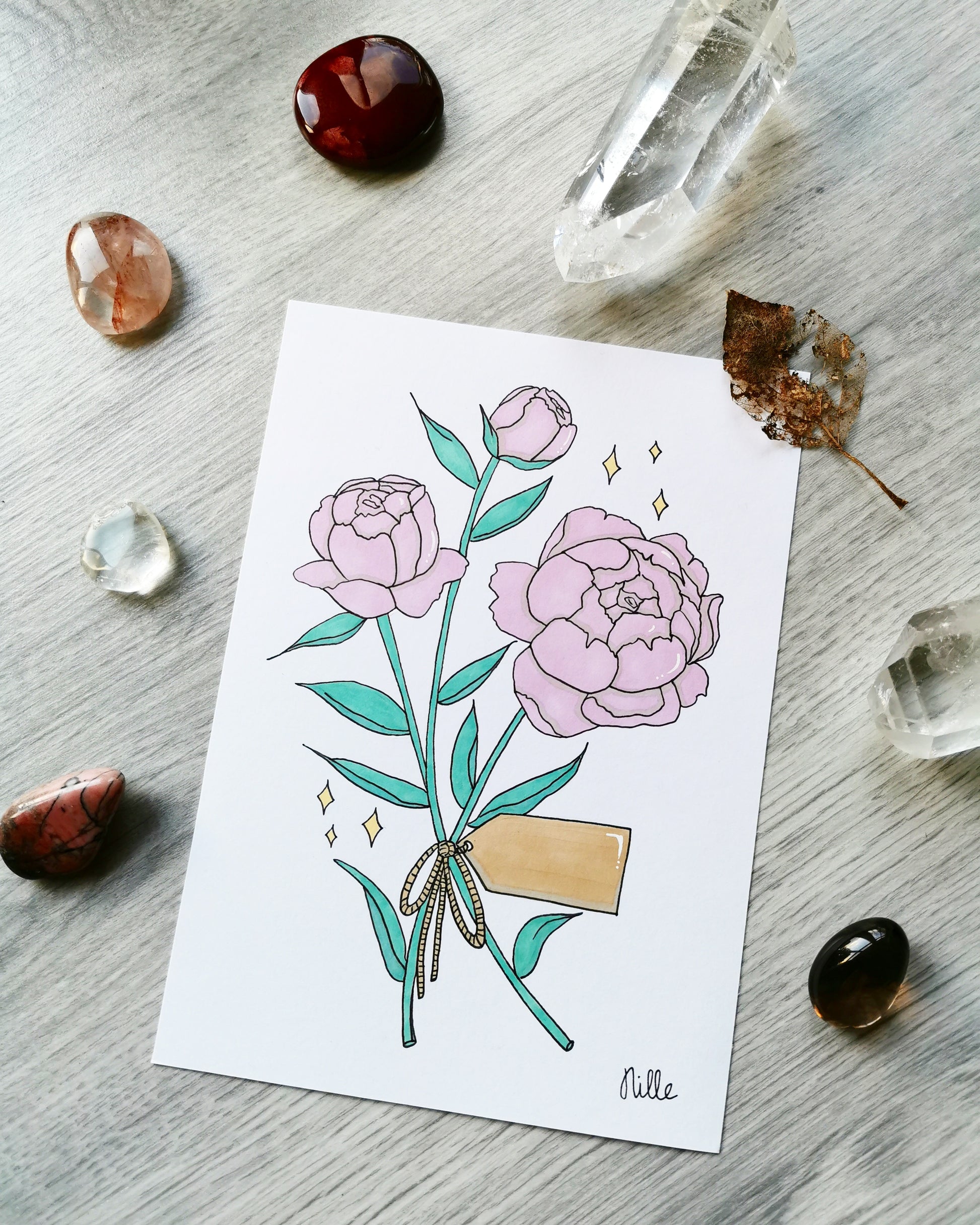 Kortet er tegnet og farvelagt i hånden af mig og derefter trykt på 300g A5 papir.