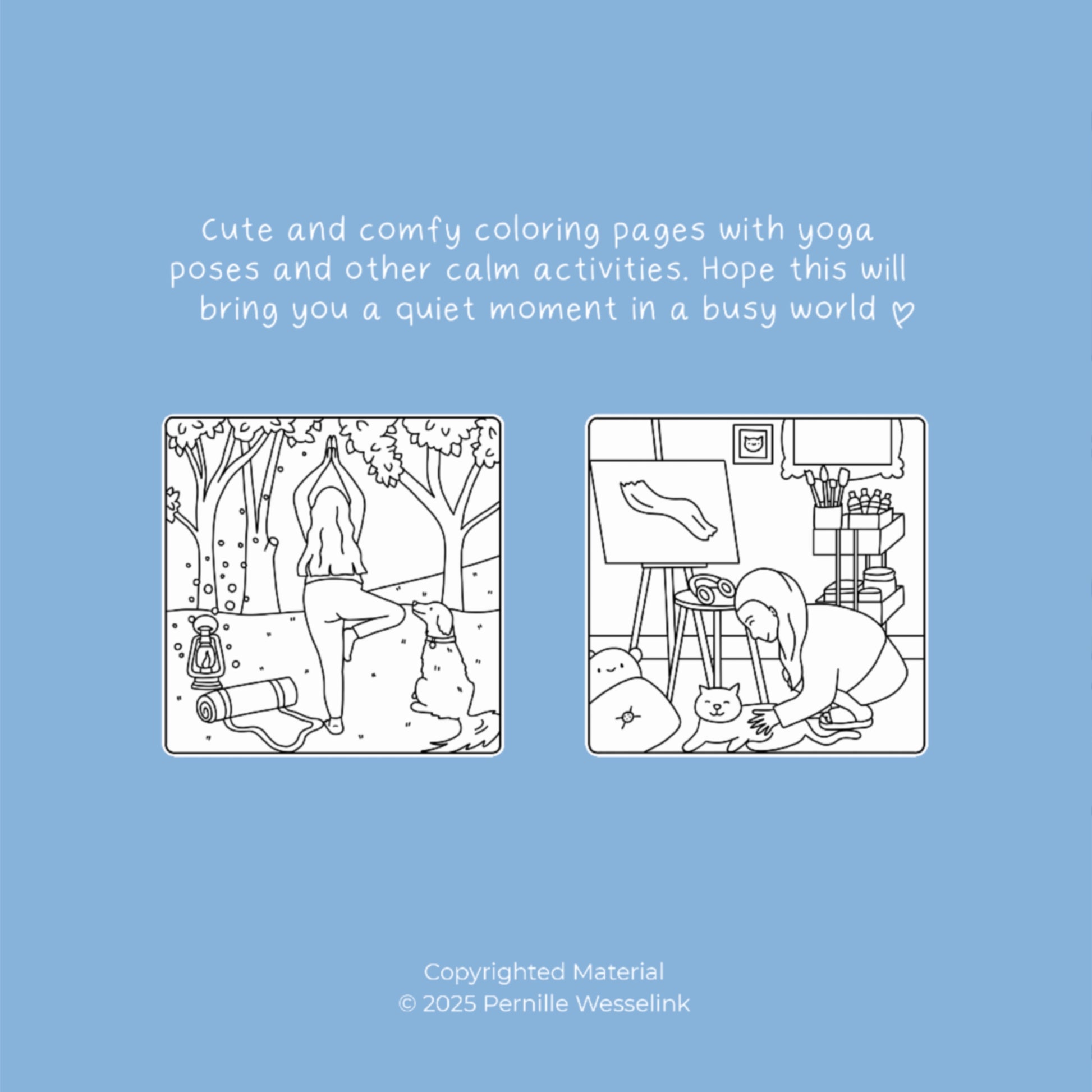 Forkæl dig selv med en smuk pdf malebog fyldt med beroligende yoga og self-care illustrationer. Perfekt til dig, der har brug for et pusterum i hverdagen. Sænk tempoet, træk vejret dybt, og skab dine egne små kunstværker med dine yndlingsfarver.