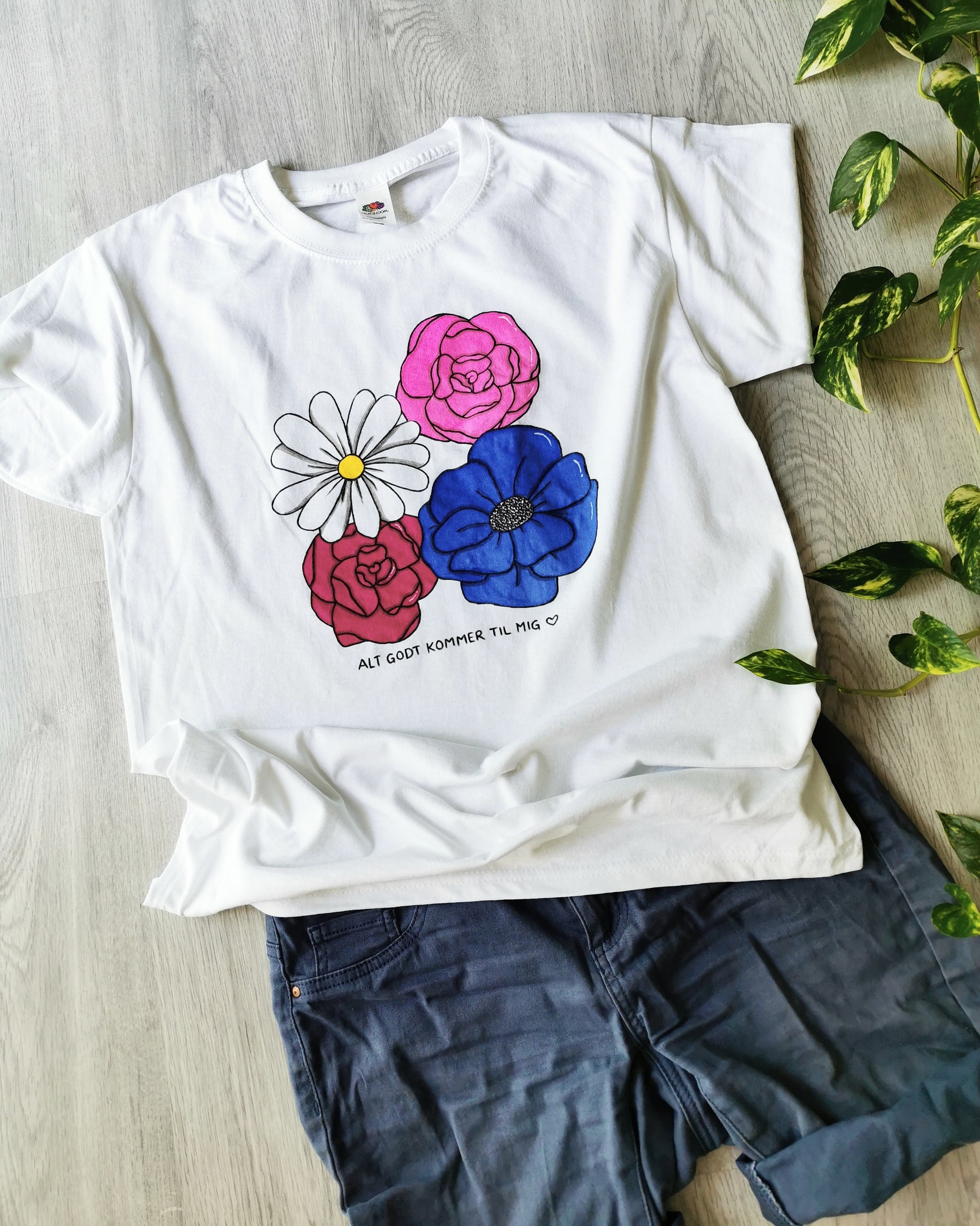 Den smukke t-shirt er håndtegnet/malet af mig.
