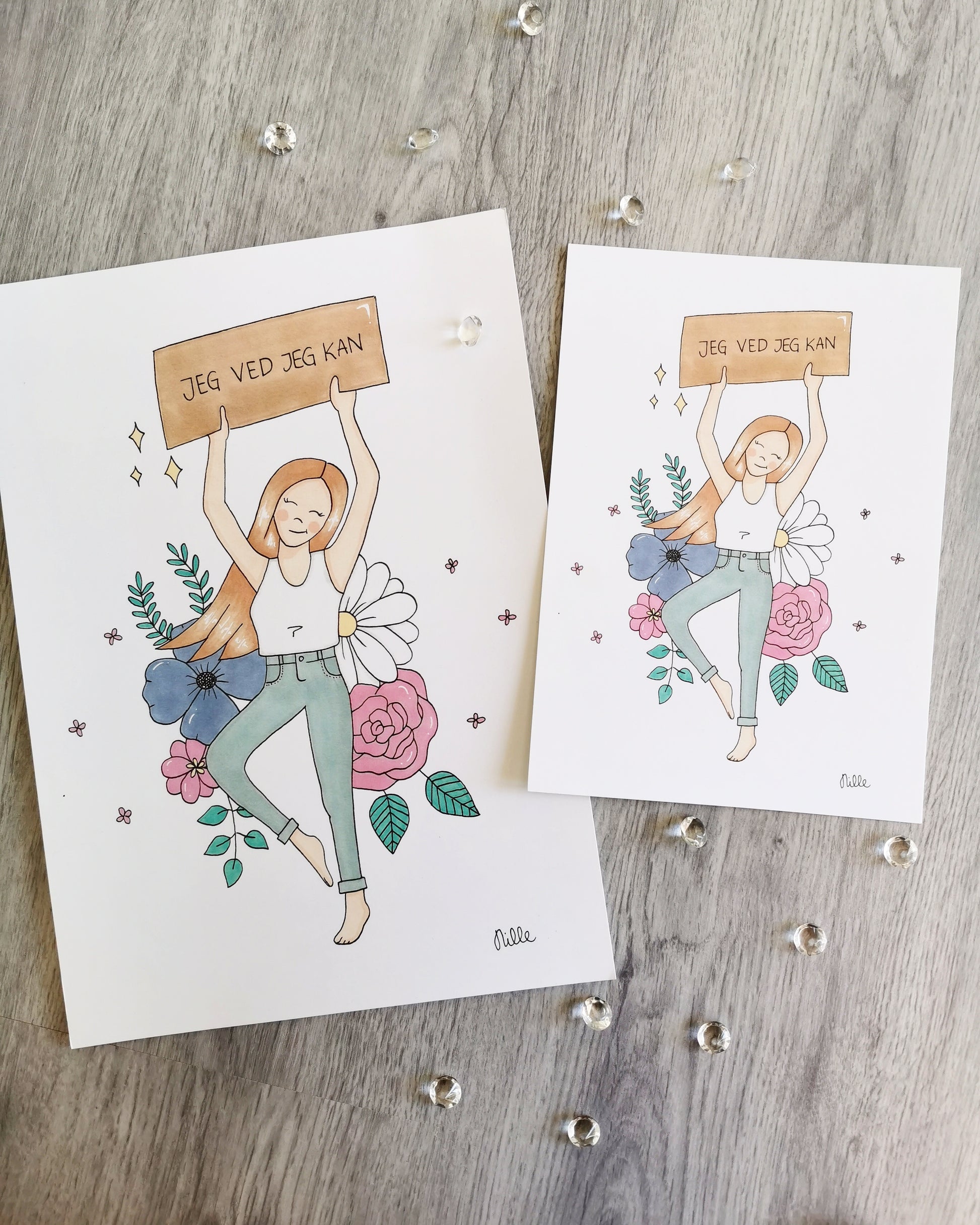 Power illustrationerne er tegnet og farvelagt i hånden af mig og derefter trykt på 300g papir.