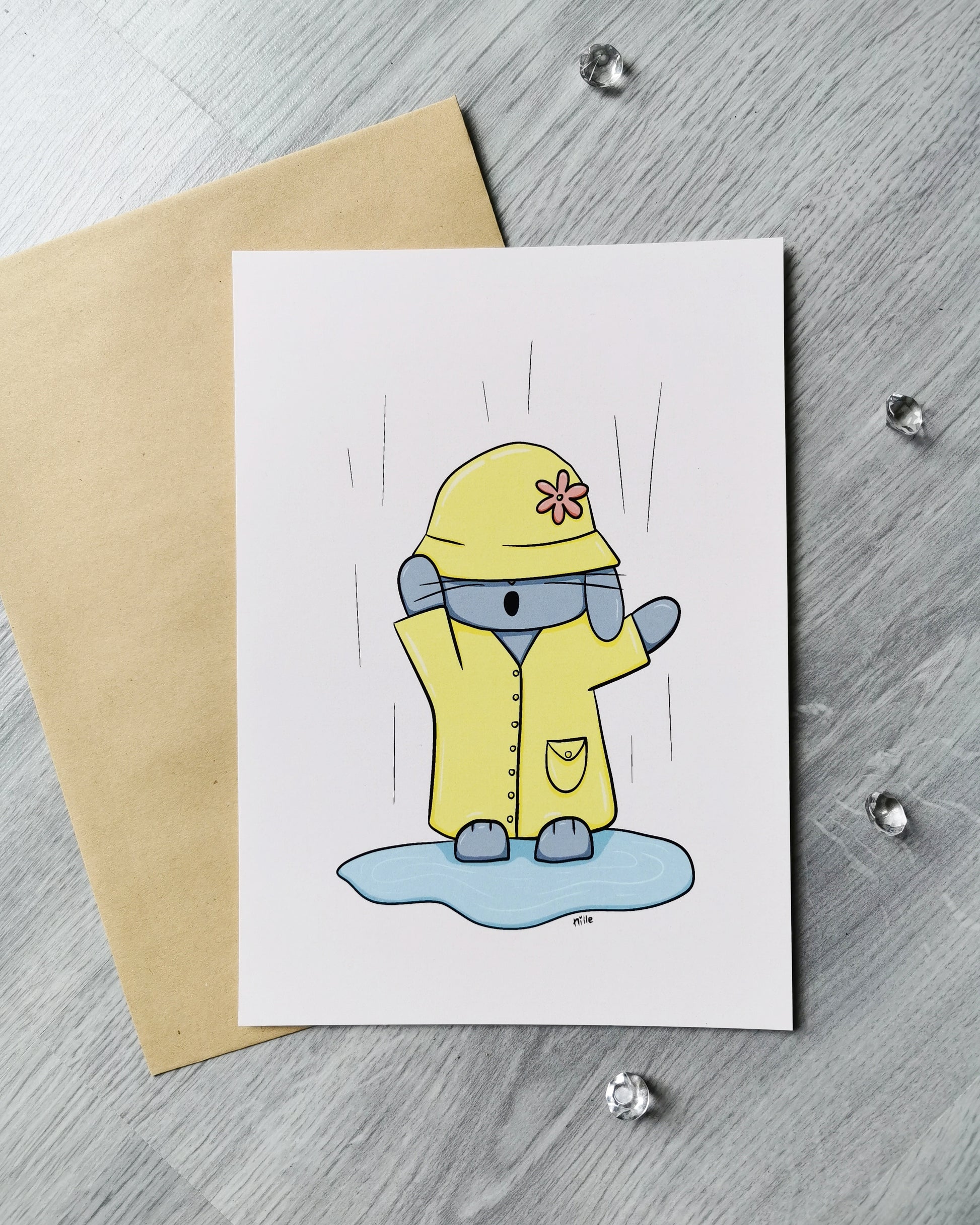 Det smukke kort er tegnet og farvelagt digitalt og derefter trykt på 300g A5 papir.