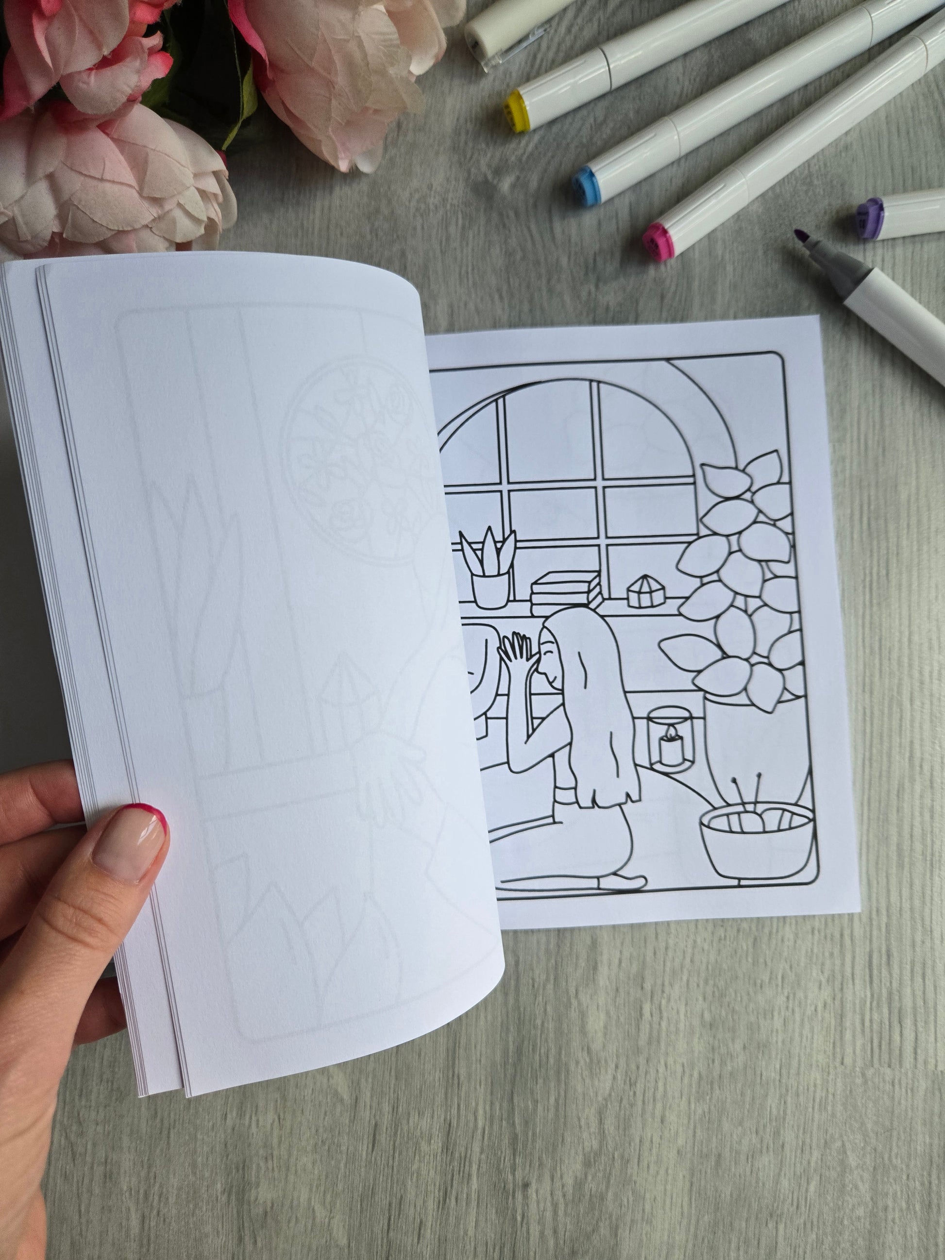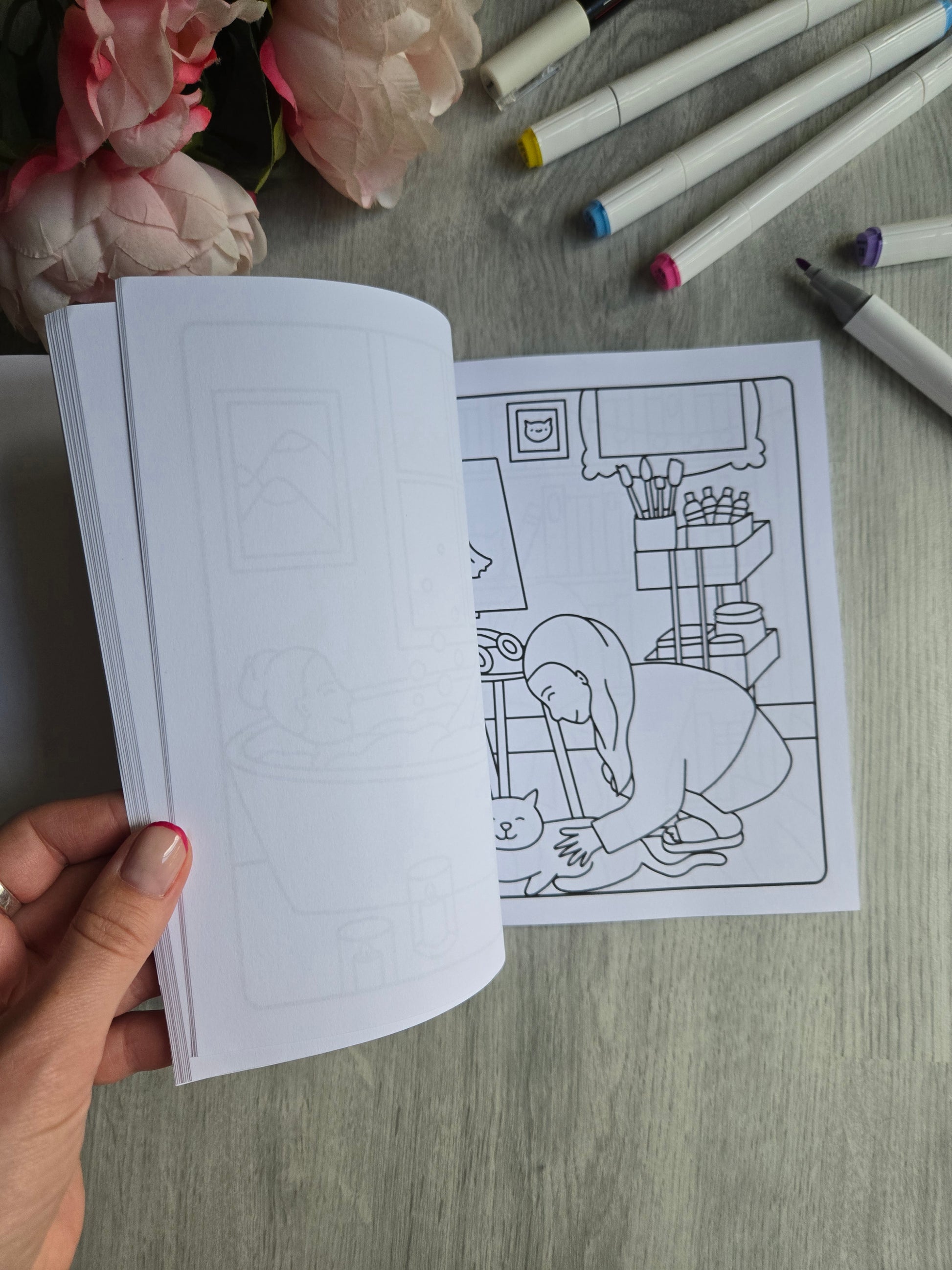 Forkæl dig selv med en smuk malebog fyldt med beroligende yoga og self-care illustrationer. Perfekt til dig, der har brug for et pusterum i hverdagen. Sænk tempoet, træk vejret dybt, og skab dine egne små kunstværker med dine yndlingsfarver.