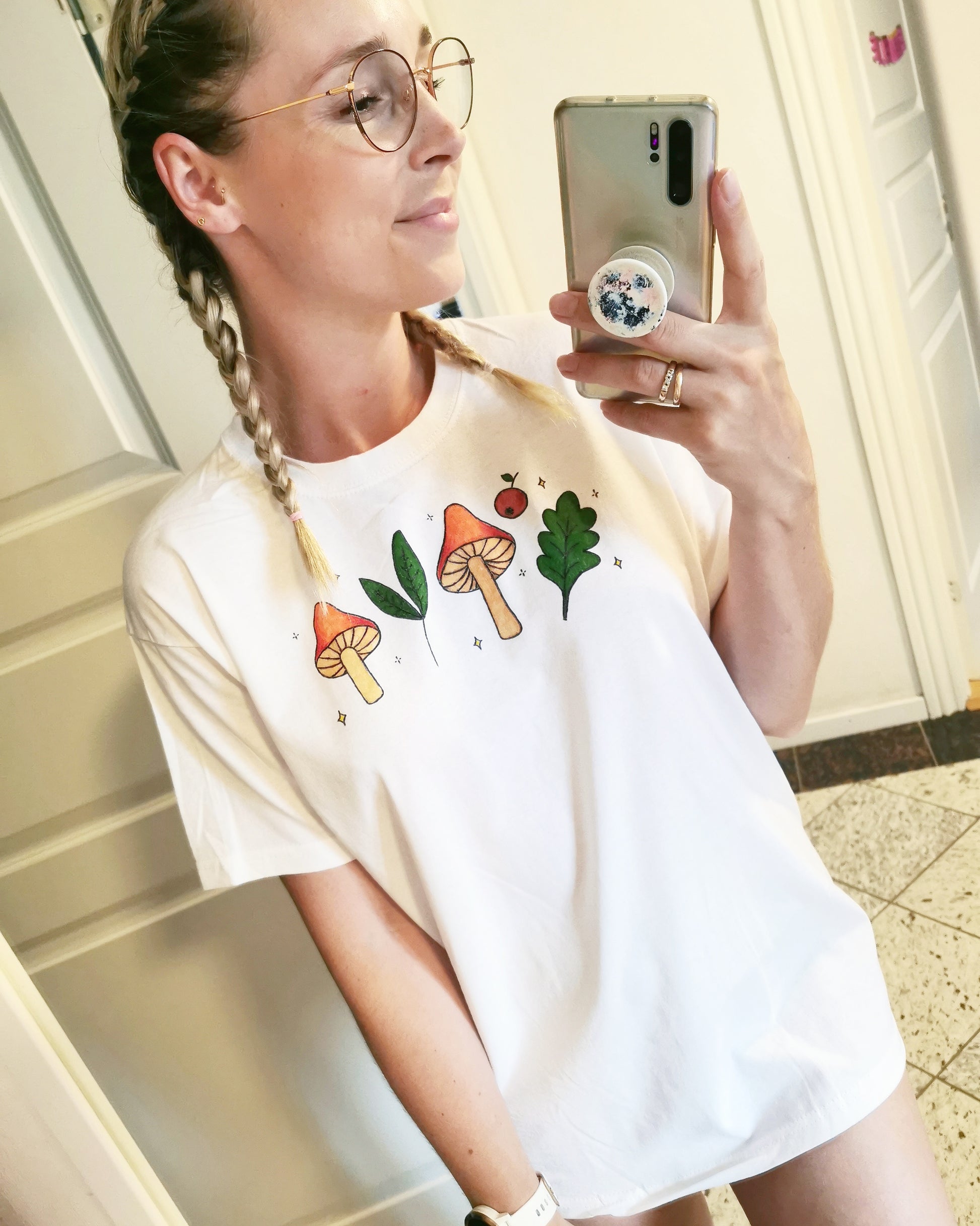 Den smukke t-shirt er håndtegnet/malet af mig.