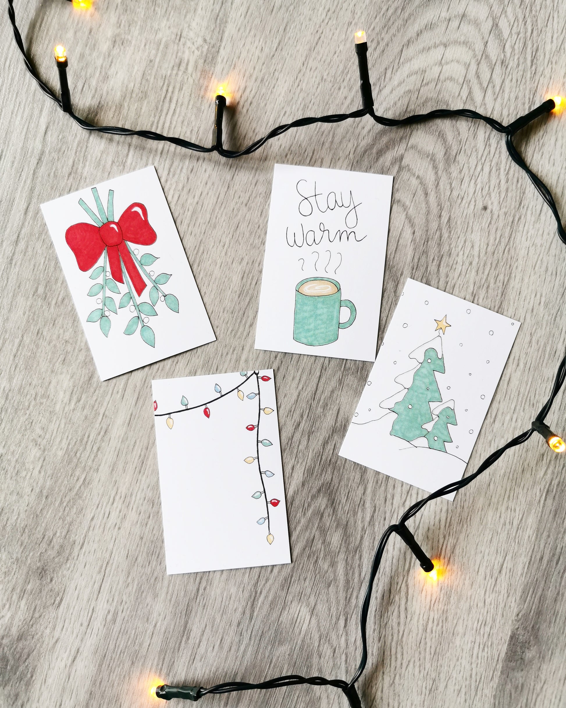 Gavemærkerne er tegnet og farvelagt i hånden af mig og derefter trykt på 300g papir.